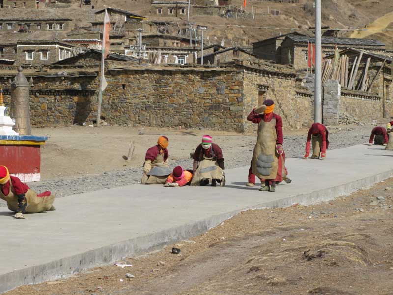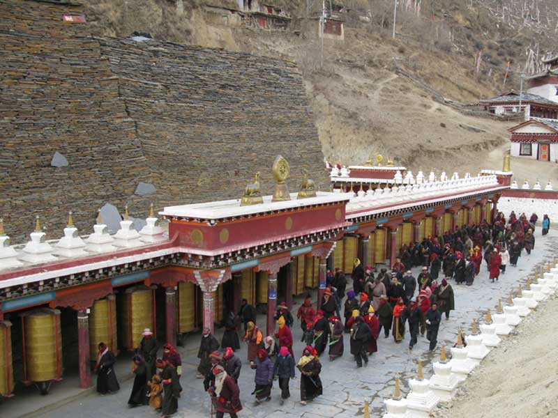 This “Peaceful Pujia” was started from October 1999. The sites are included: Peaceful Tashi Falun Zha-Cang; Peaceful Buddhist Academy, Peaceful Tibetan hospital, Peaceful Rainbow Celestial Burial, Peaceful Mani Pile Wall, Peaceful Nursing home and Peaceful Primary School. Those sites are all located in Ge Ri Ma village which is some 10 km northwest from Tagong by road or 2-3 hours crossing through the Tagong Grassland by hike. Some people call this nunnery is “Ani Gompa“, which is not verified