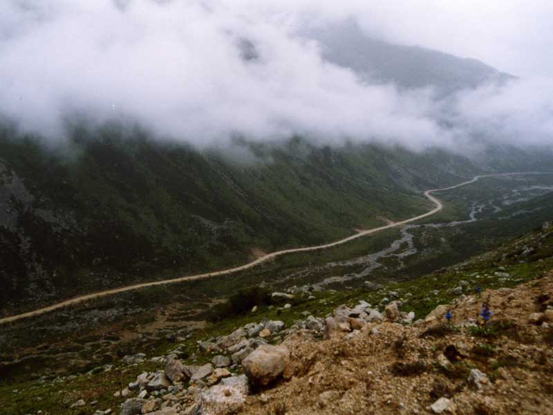 Trola Mountain is located in the Kanze (Garze) Tibetan Autonomous Prefecture; it separates the Derge County from Kanze (Garze) County; It is 40 kilometers from Manigango, and 75 kilometers from Derge County; The journey from Manigango to Derge over Trola mountain pass usually takes 4 to 5 hours, among of which 2 hours is for driving over the Trola Mountain pass; the road is dirt road, and it was like this: