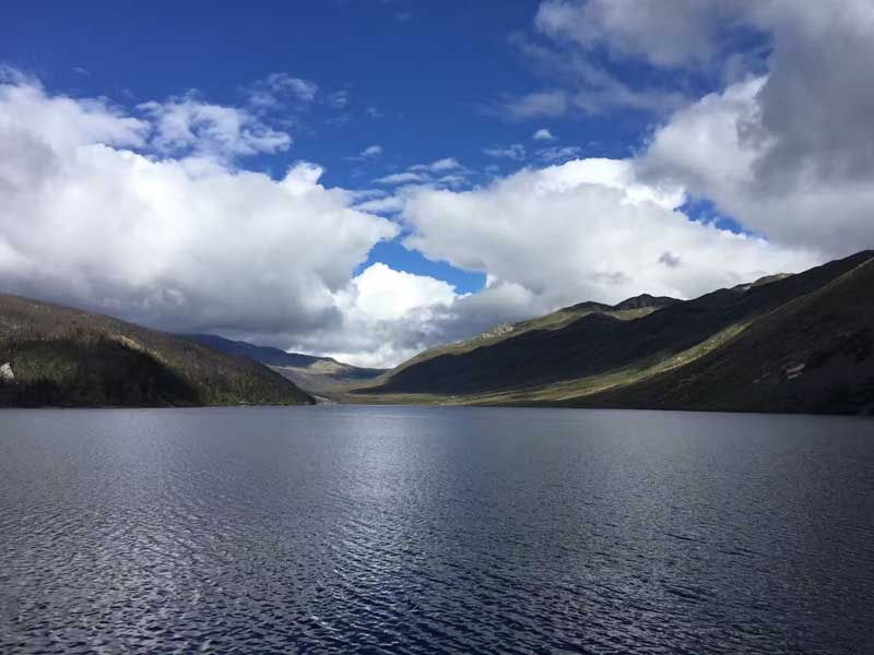 Mu ge cuo Lake is also called “The Wild Man Lake”. It is with an altitude of 3,700 meters. The water surface covers about three square kilometers, the deepest of this lake is about 70 meters. The lake is surrounded by pines, cedars, and rhododendron trees on three sides and neighboring the vast Lhagang (Tagong) grassland and Lhagang (Tagong) monastery in its west.